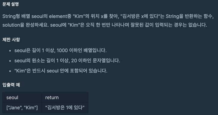 return `๊น์๋ฐฉ์ ${seoul.indexOf("Kim")}์ ์๋ค`;