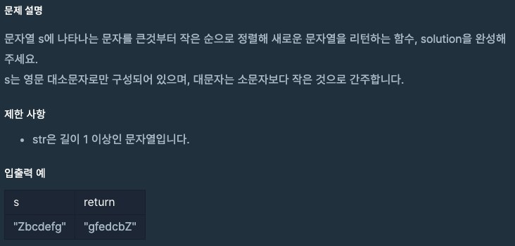 ๋ฌธ์์ด s ๋ฅผ split์ผ๋ก ๊ฐ๊ฐ์ ์์๋ก ๋๋ ํ a > b ์ผ ๊ฒฝ์ฐ์๋ง ์๋ฆฌ๋ฅผ ๋ฐ๊ฟ ๋ด๋ฆผ์ฐจ์์ผ๋ก ์ ๋ ฌํ๋ค ํฉ์ณ์คฌ๋ค.