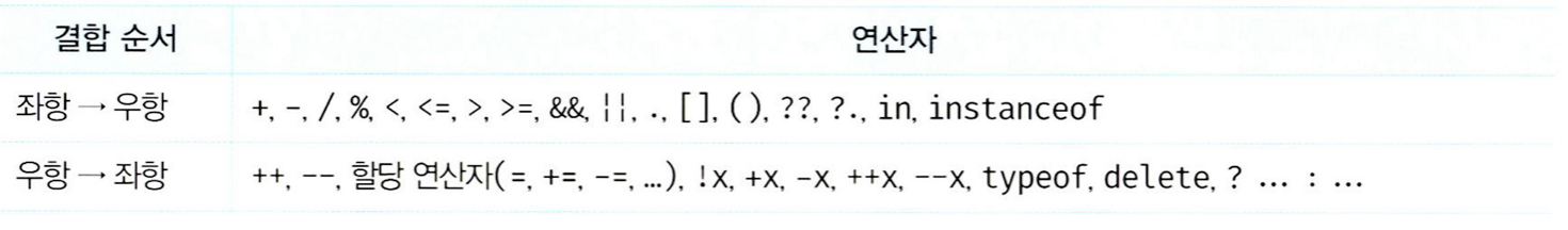 - ํ ๋น์ ์ฐ์ธก์์ ์ข์ธก์ผ๋ก ์ด๋ฃจ์ด์ง๊ณ ํผ์ฐ์ฐ์๊ฐ ๋ ๋ง๋คํ๋ค ์ ์ผ ์ฐ์ธก์์ ์ข์ธก์ผ๋ก ์ด๋ฃจ์ด์ง๋ค.