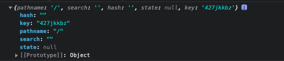 - ๊ฐ์ฒด์์๋ pathname, search, hash, state, key ํ๋กํผํฐ๊ฐ ์กด์ฌํ๋ค.