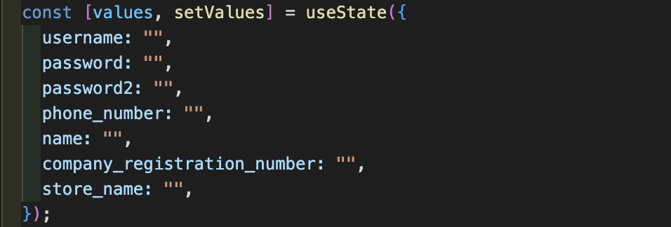 - 회원가입 input값들을 저장하고 있는 values 객체생성