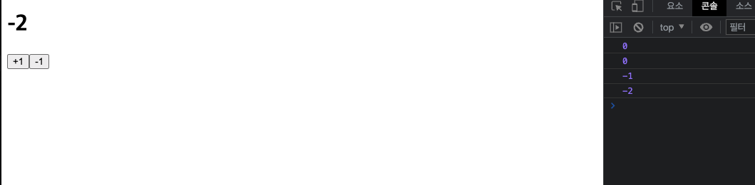 - ํ์ธํ๋ ๋ฐฉ๋ฒ์ onIncrease ํจ์๋ด์ setNumber๋ฅผ ์คํ ์ดํ ํจ์์์์ console.log(number)๋ฅผ ํด๋ณด๋ฉด ๋ณ๊ฒฝ๋๊ธฐ ์ ๊ฐ์ธ 0์ด ๋์ค๊ฒ ๋๋ค.